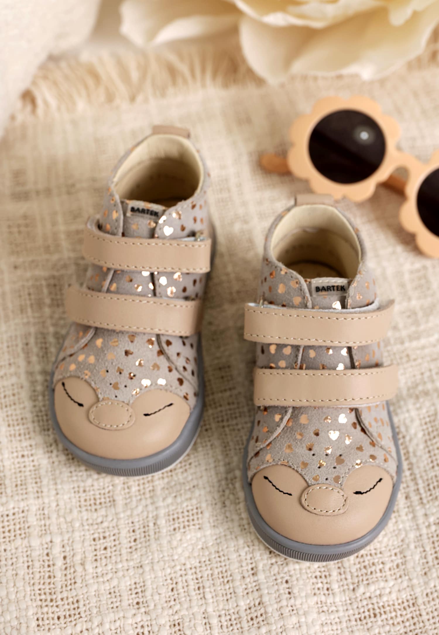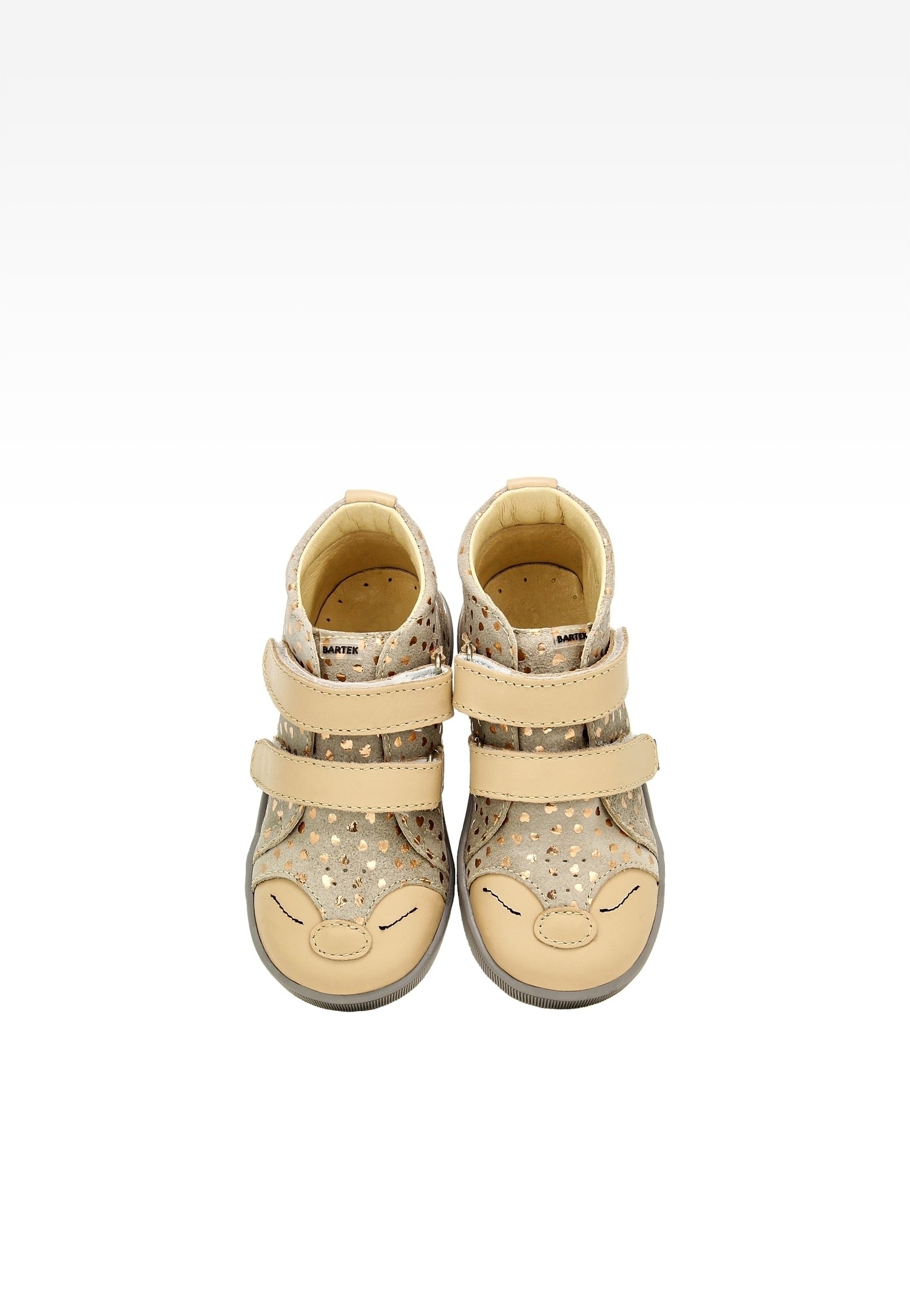 Beżowe trzewiki sarenki BARTEK ze złotymi serduszkami i zwierzątkiem na nosku 1356801