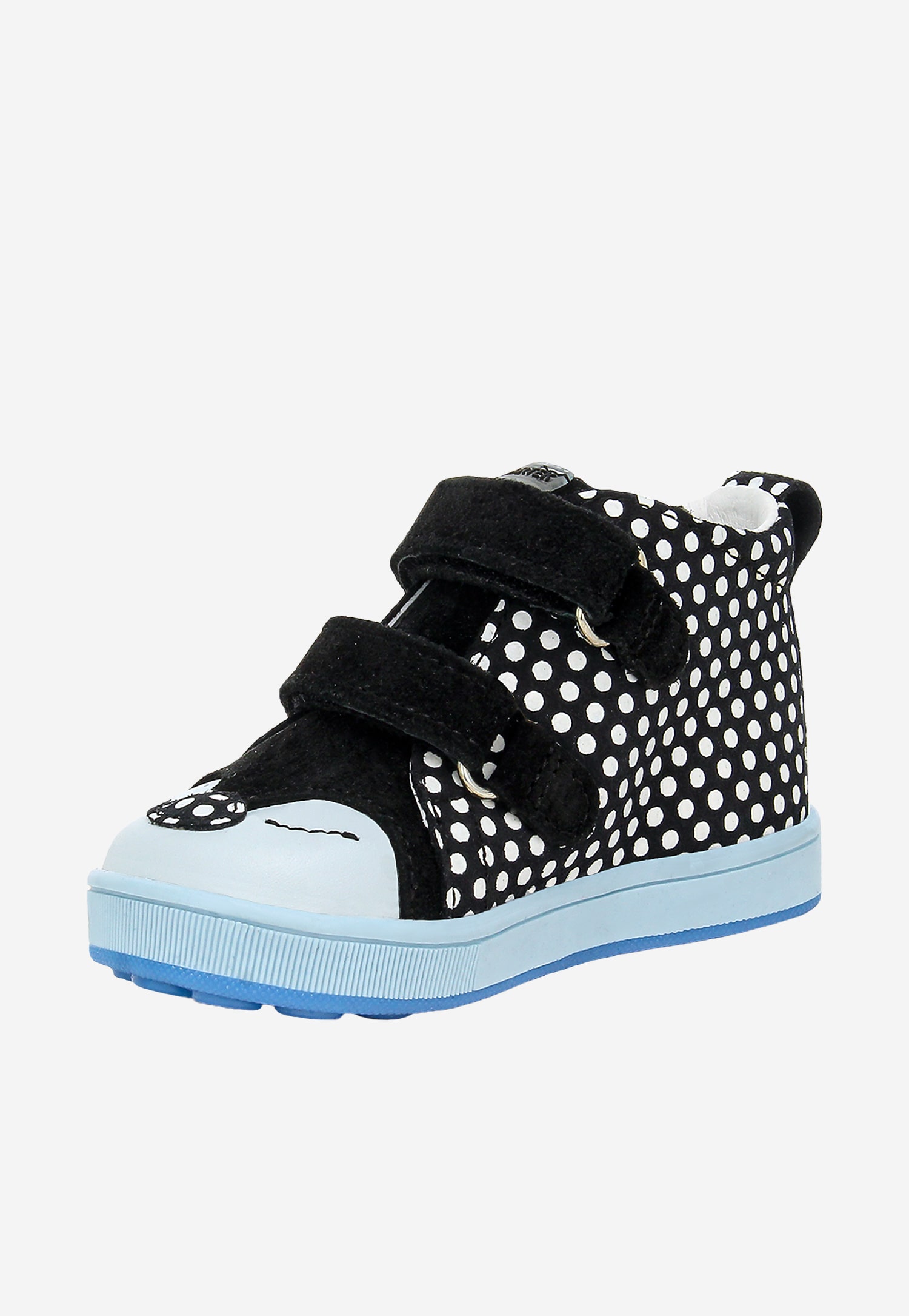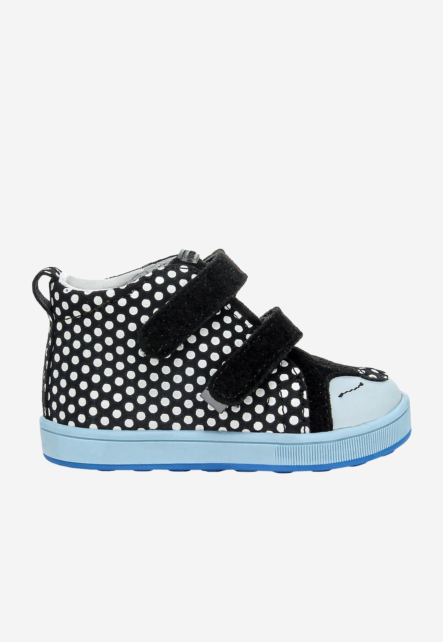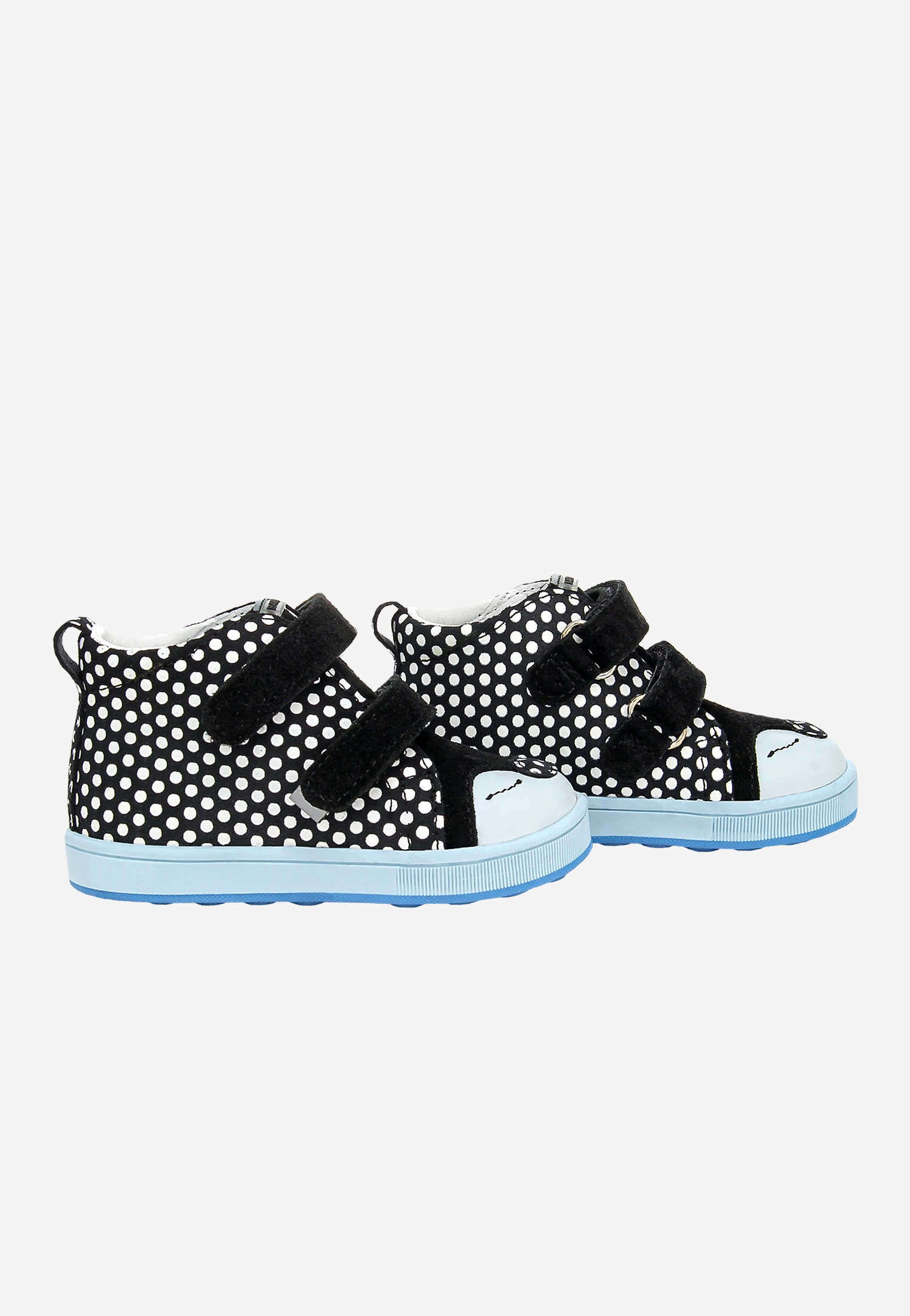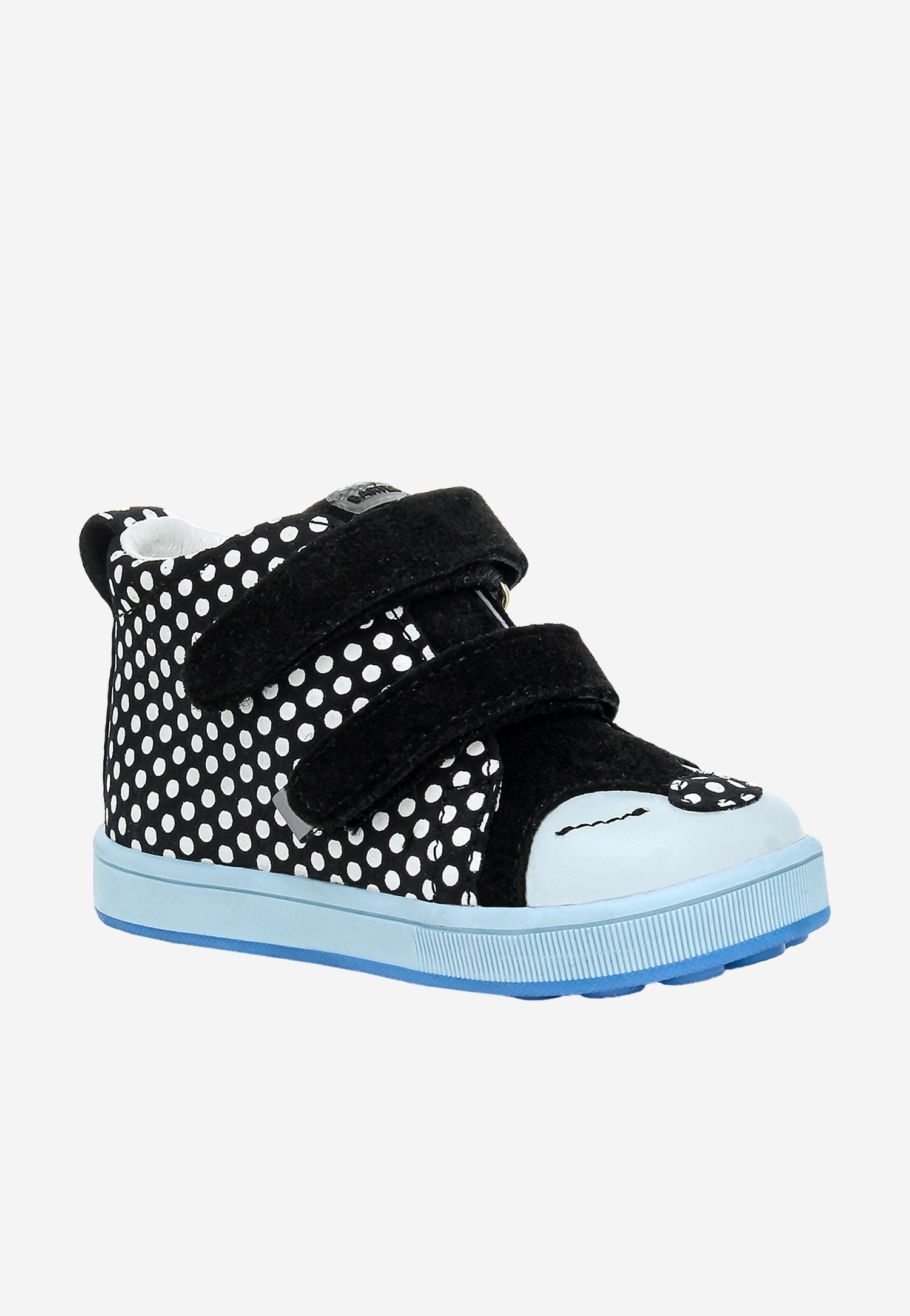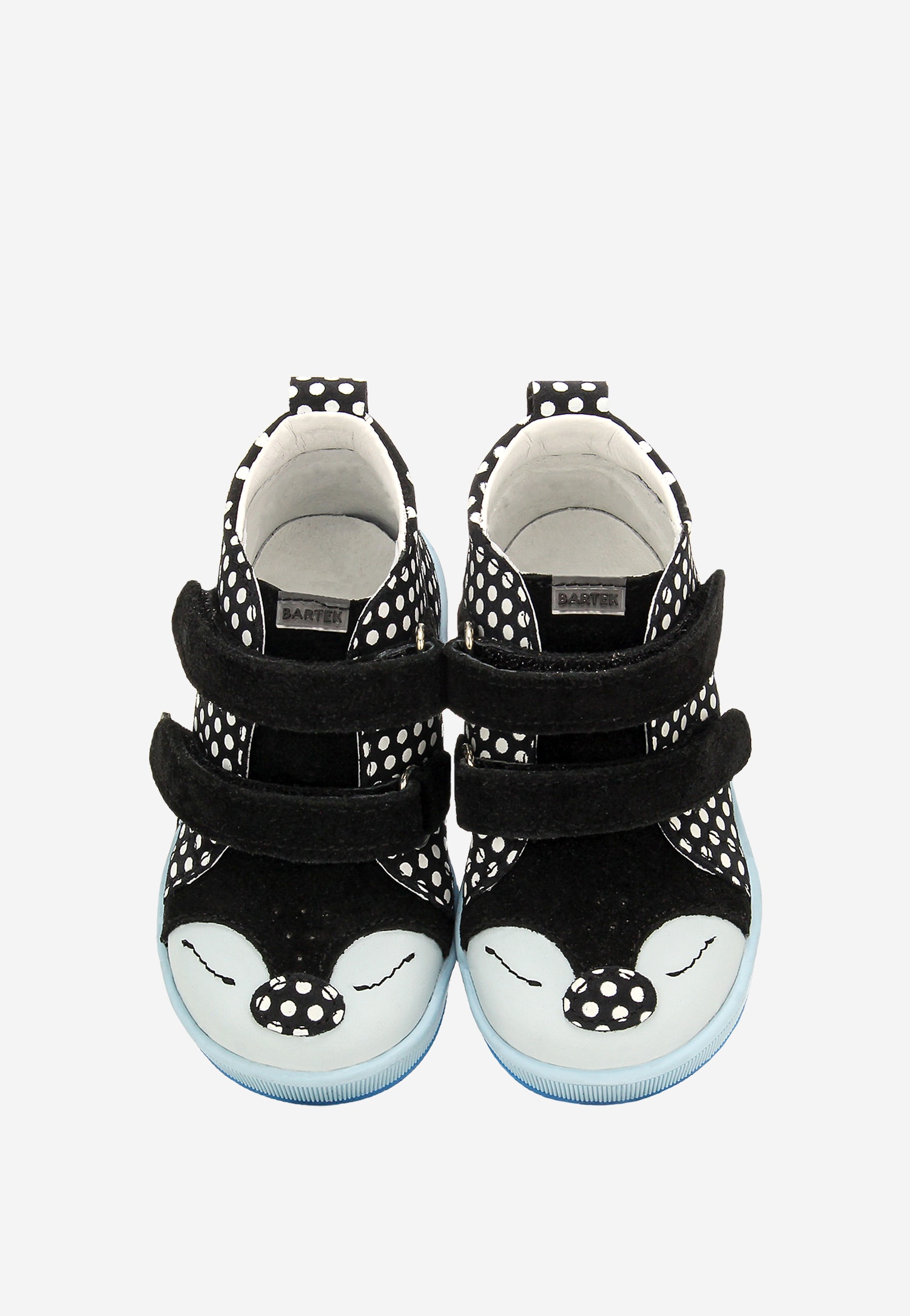 Czarne trzewiki w białe kropki z niebieską podeszwą BARTEK 13568-10