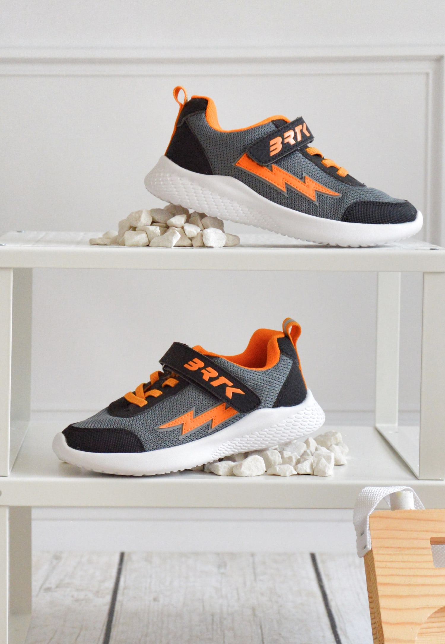 Czarno-szare sneakersy z pomarańczową błyskawicą BARTEK 87006-10