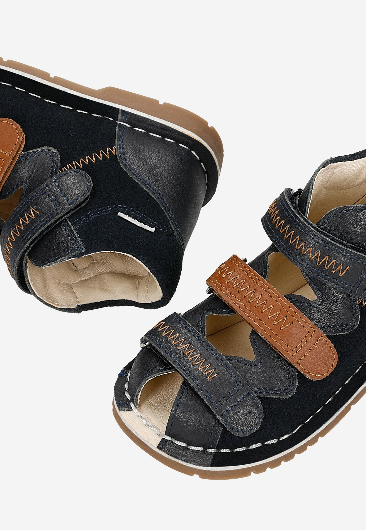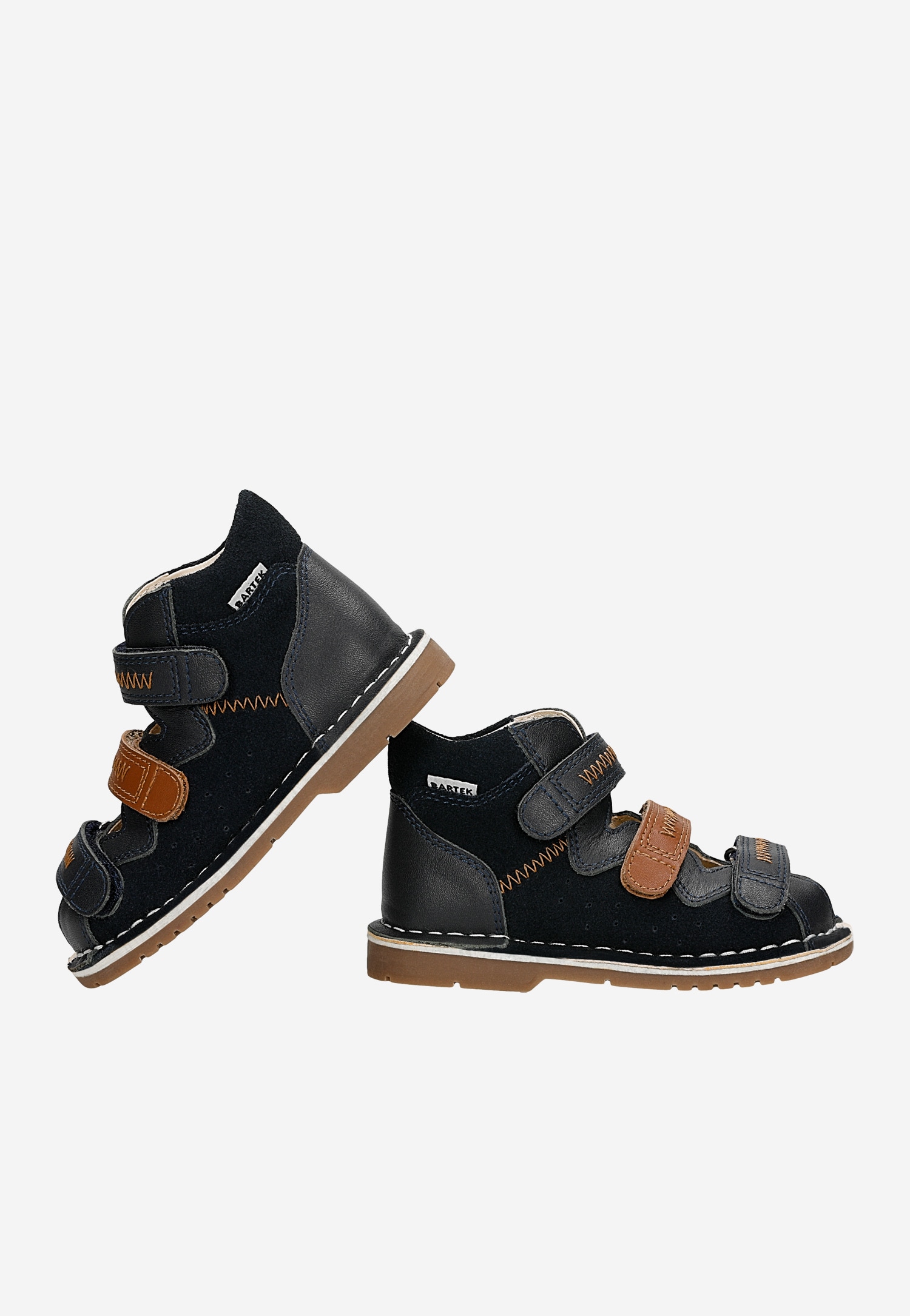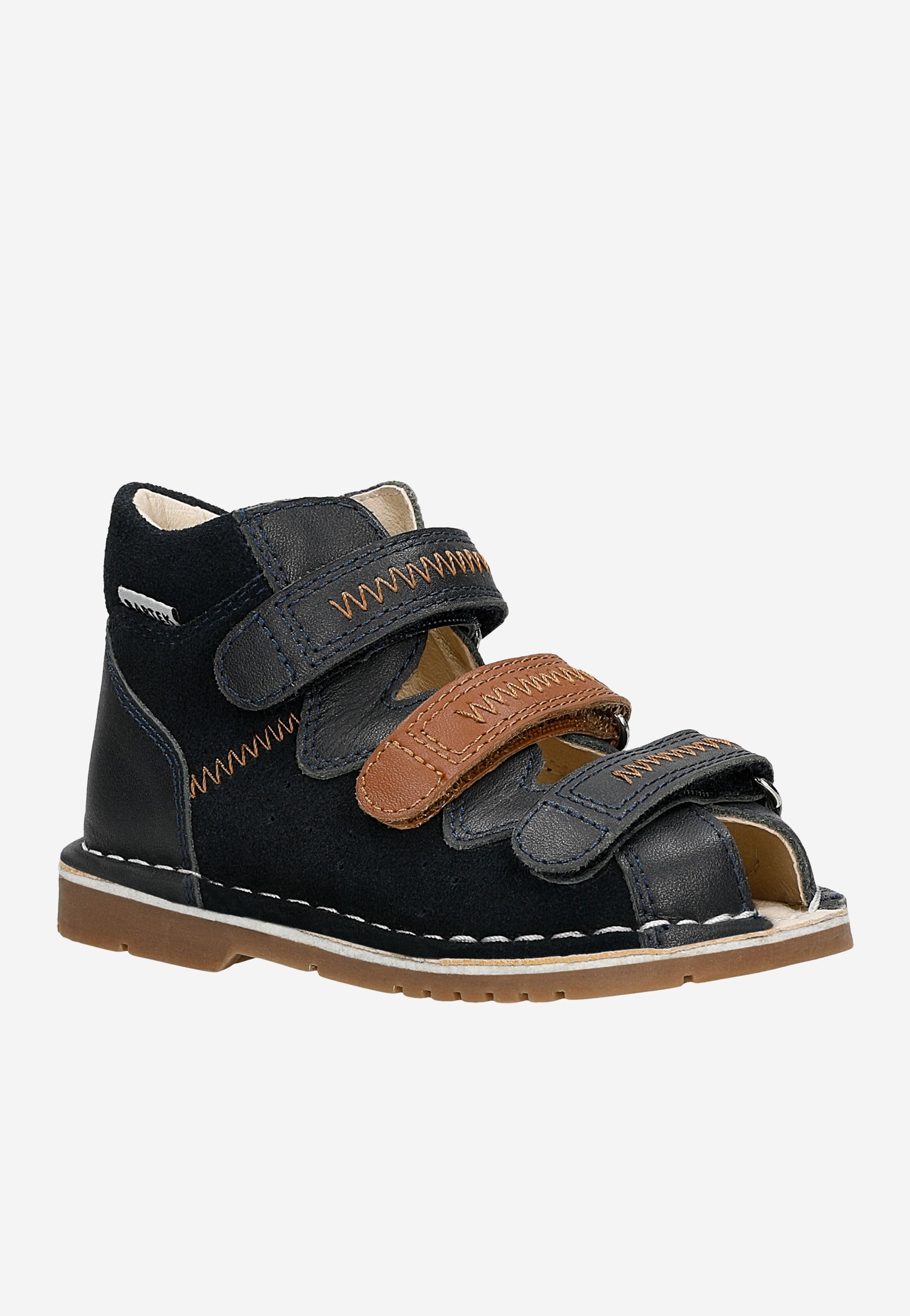 Granatowo-brązowe sandały profilaktyczne z obcasem Thomasa BARTEK 89200-62