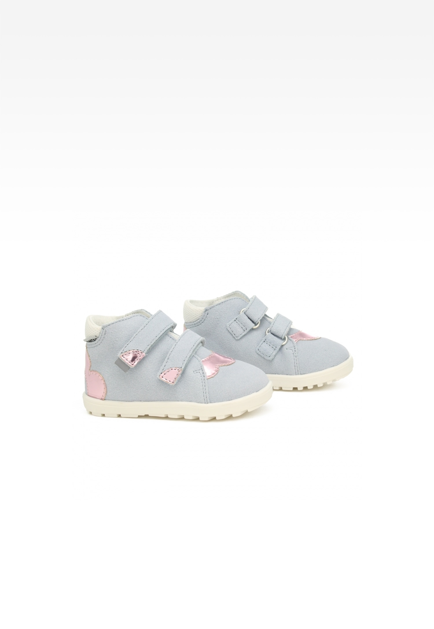 Odpowiednio wysoką cholewkę ,z naturalnego miękkiego weluru oraz gładkiej skóry licowej, otacza miękki piankowy kołnierz chroniący kostki dziewczynki przed obtarciami, a usztywnione zakładki zabezpieczają pięty chroniąc małe stópki przed skręc3eniem.