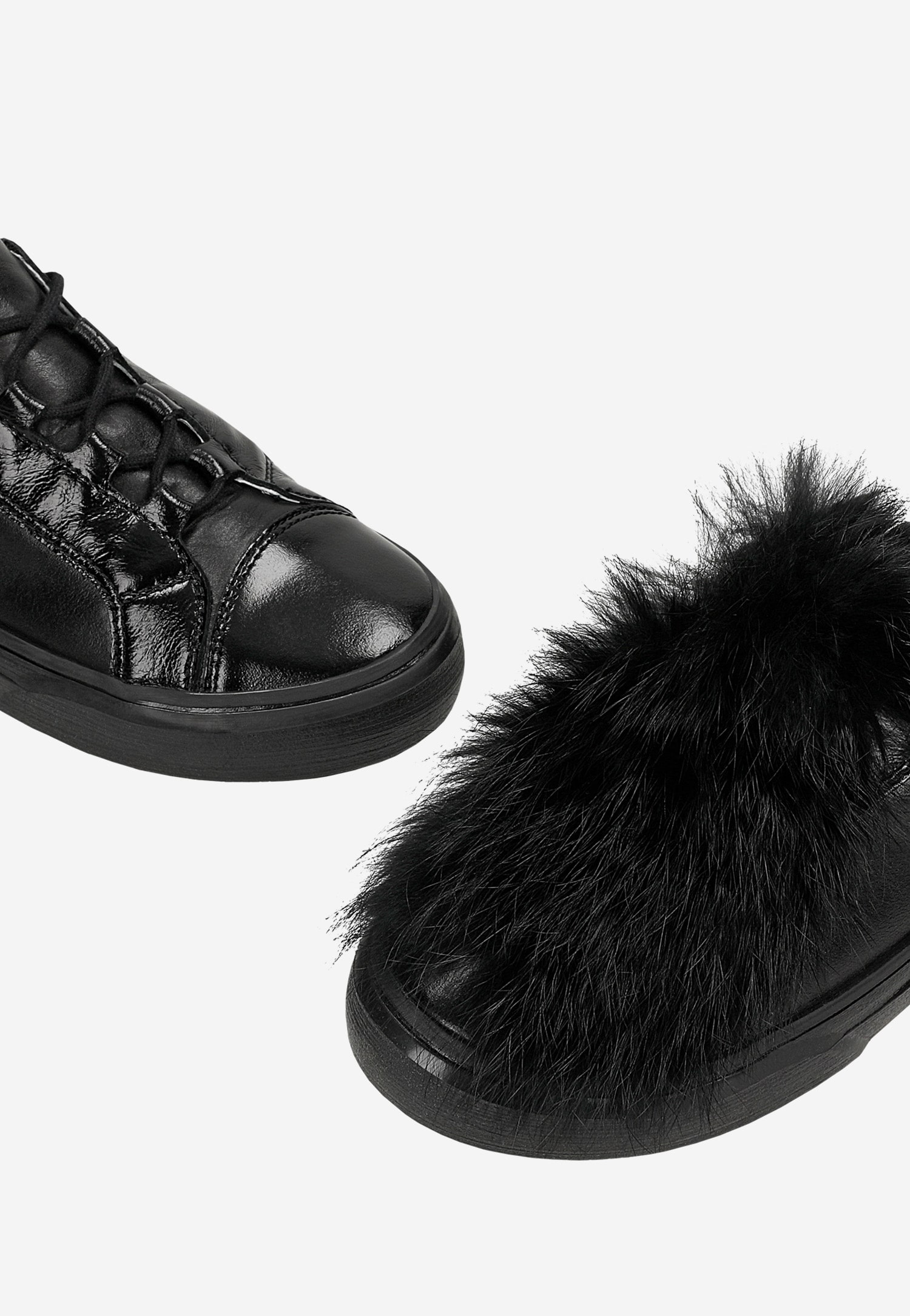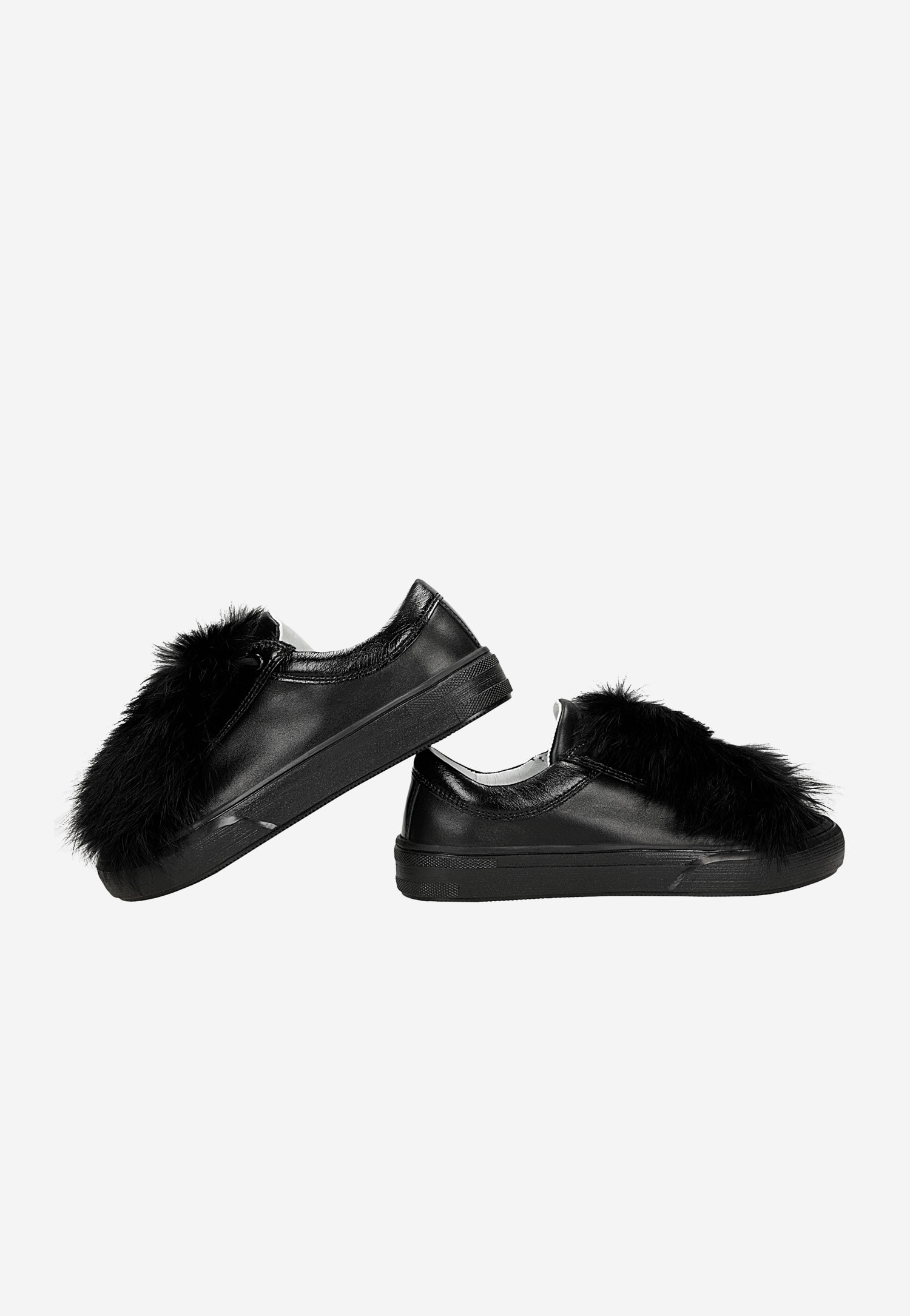 Półbuty dziewczęce BARTEK, na sezon wiosenno-jesienny, w czarnym kolorze z fantazyjnym dopinanym futerkiem.