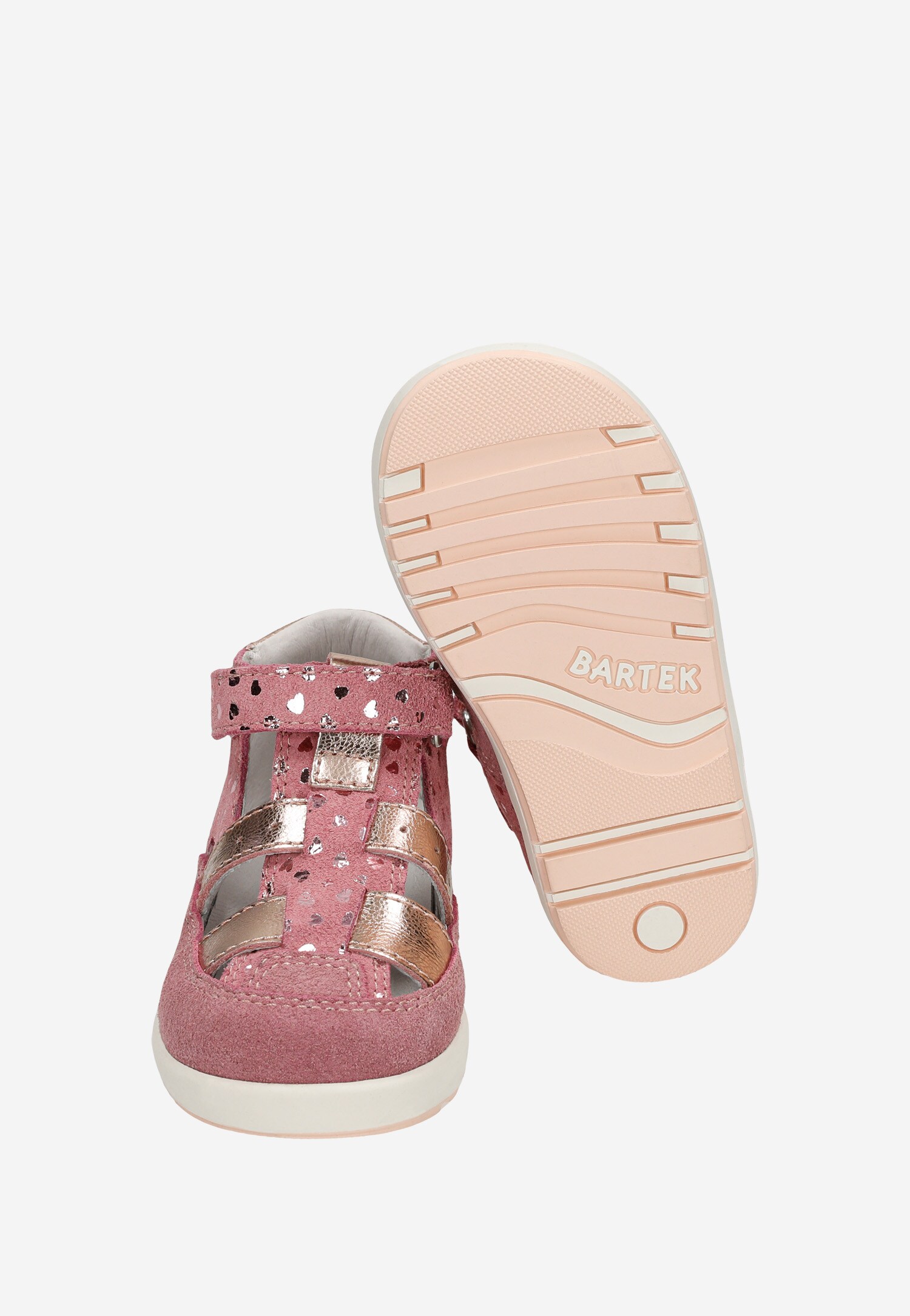 Różowe półsandały dziewczęce z błyszczącymi serduszkami BARTEK 86005-85