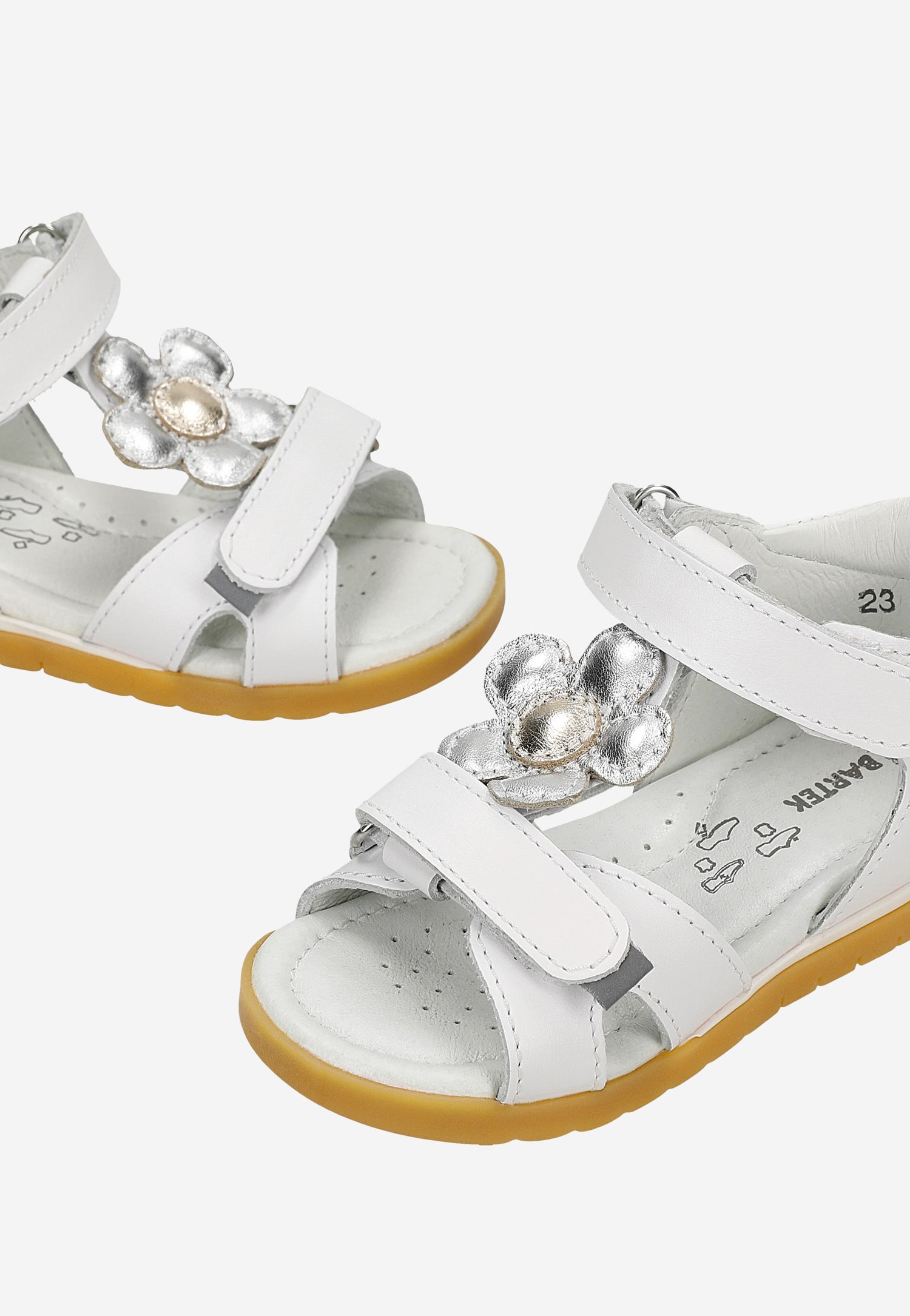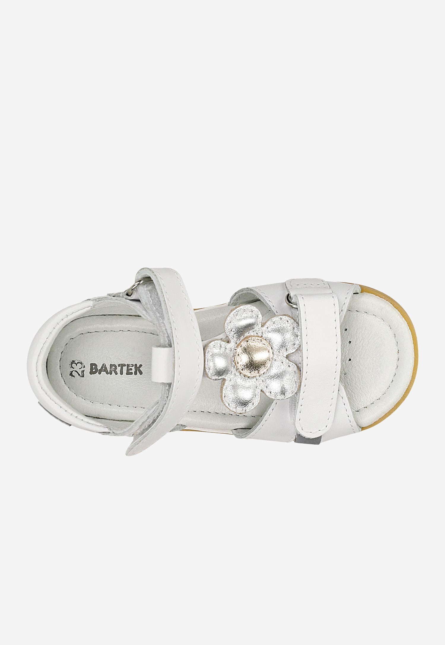 ndały BARTEK dla dziewcząt, na sezon letni w kolorze białym. Obuwie przeznaczone dla najmłodszych klientek, małych księżniczek wędrowniczek lubiących długie spacery, wędrówki letnią ciepłą porą jak też zabawy na świeżym powietrzu, odpowiednie również na wszelkiego rodzaju imprezy okolicznościowe. Buciki będą ładnym dodatkiem do letnich sukienek, spódniczek jak też klasycznych dżinsów.