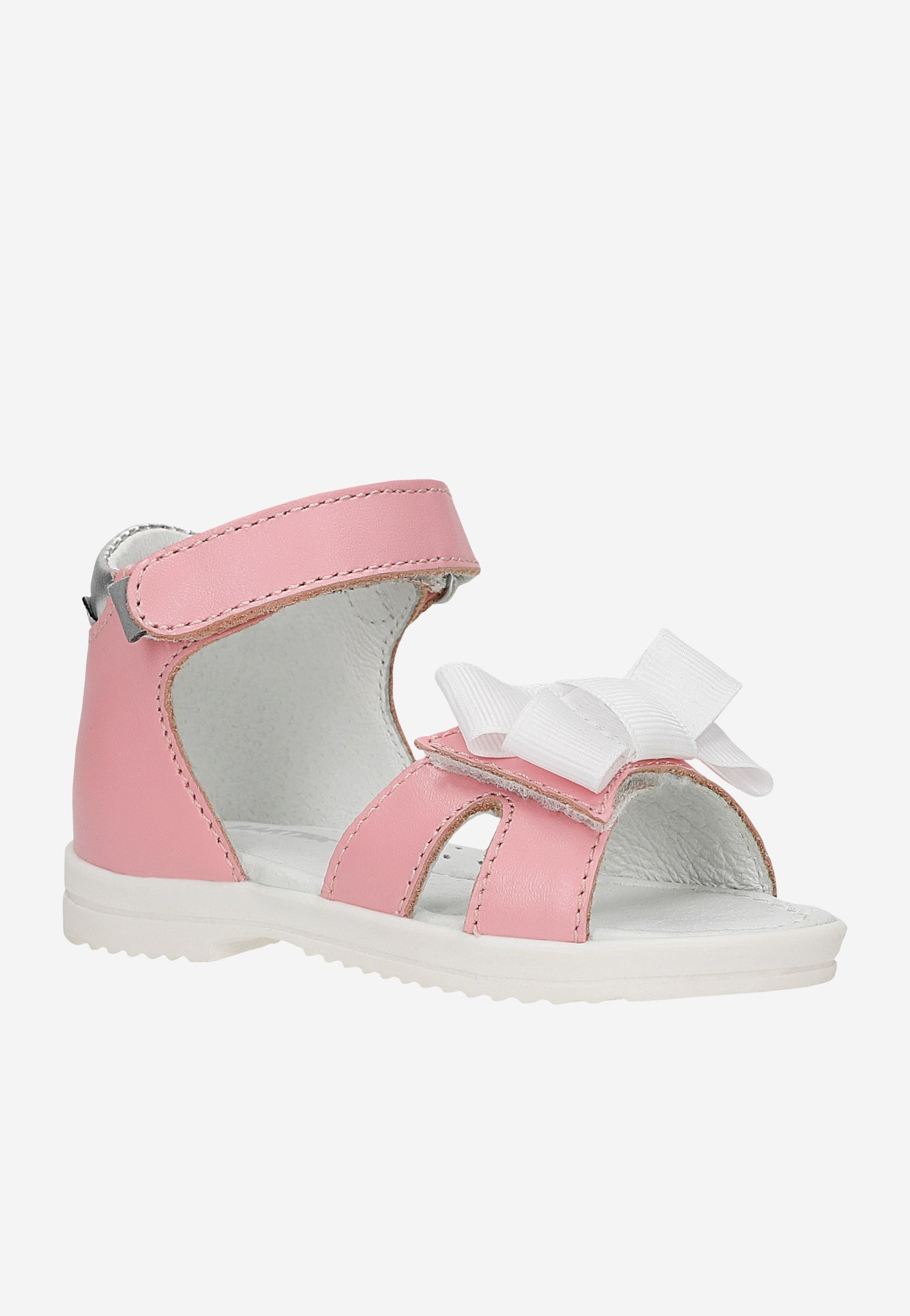 Dbając o zdrowy i prawidłowy rozwój stóp dziecka letnie buciki wykonano z najwyższej jakości skór naturalnych. Wierzch sandałków dziewczęcych to naturalna gładka skóra licowa. Cholewka posiada zakładki zabezpieczające pięty chroniąc stopy naszej pociechy przed skręceniem.