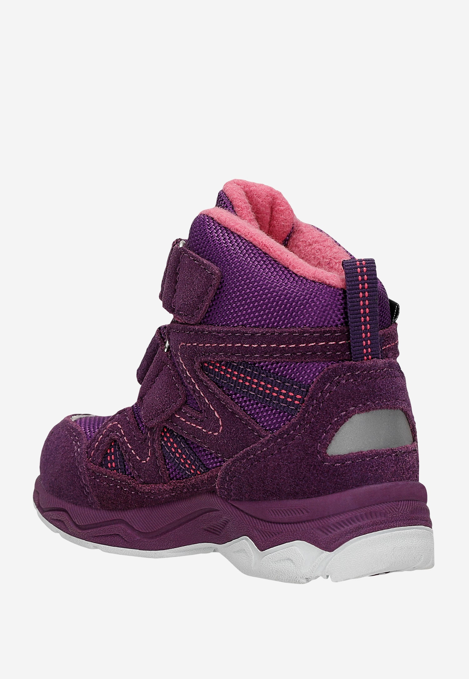 Dodatkowo buciki posiadają elementy odblaskowe, dzięki którym młoda wędrowniczka będzie widoczna z daleka, zwłaszcza w pochmurne dni lub o zmroku.