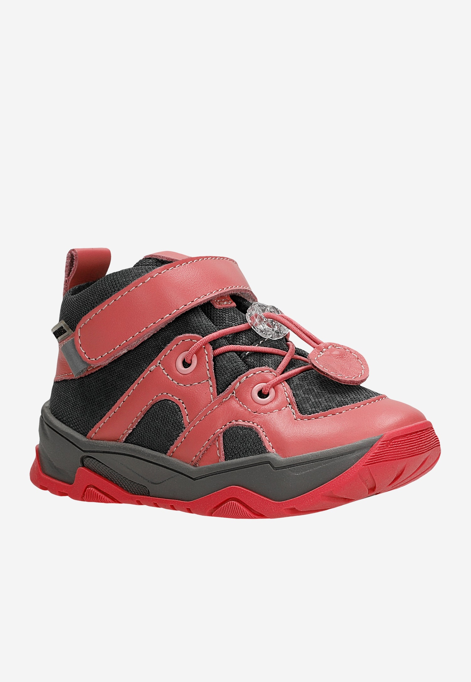 Buciki wyposażono dodatkowo w odblaski, dzięki którym dziecko widoczne jest z daleka zwłaszcza w pochmurne dni lub o zmroku.
