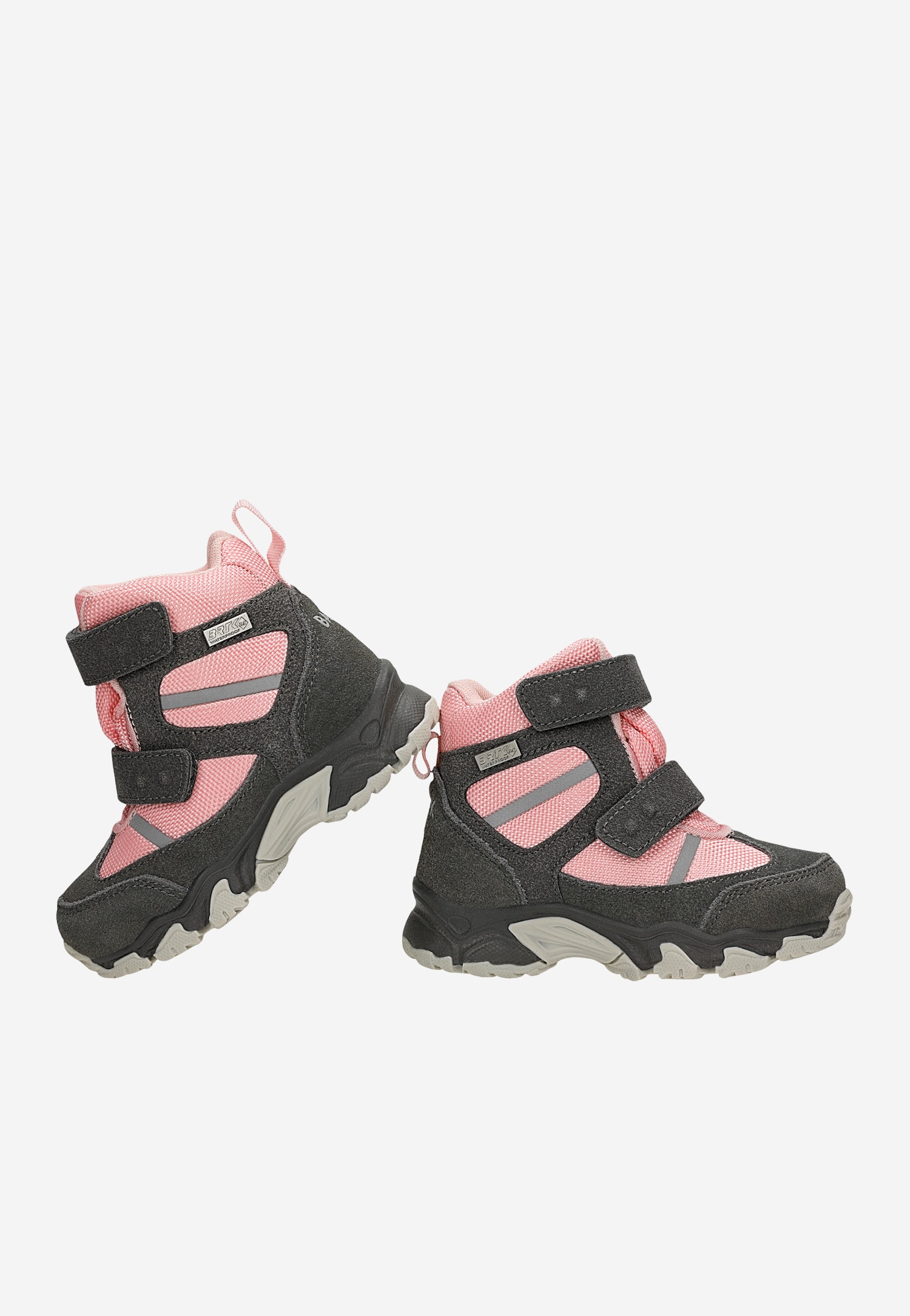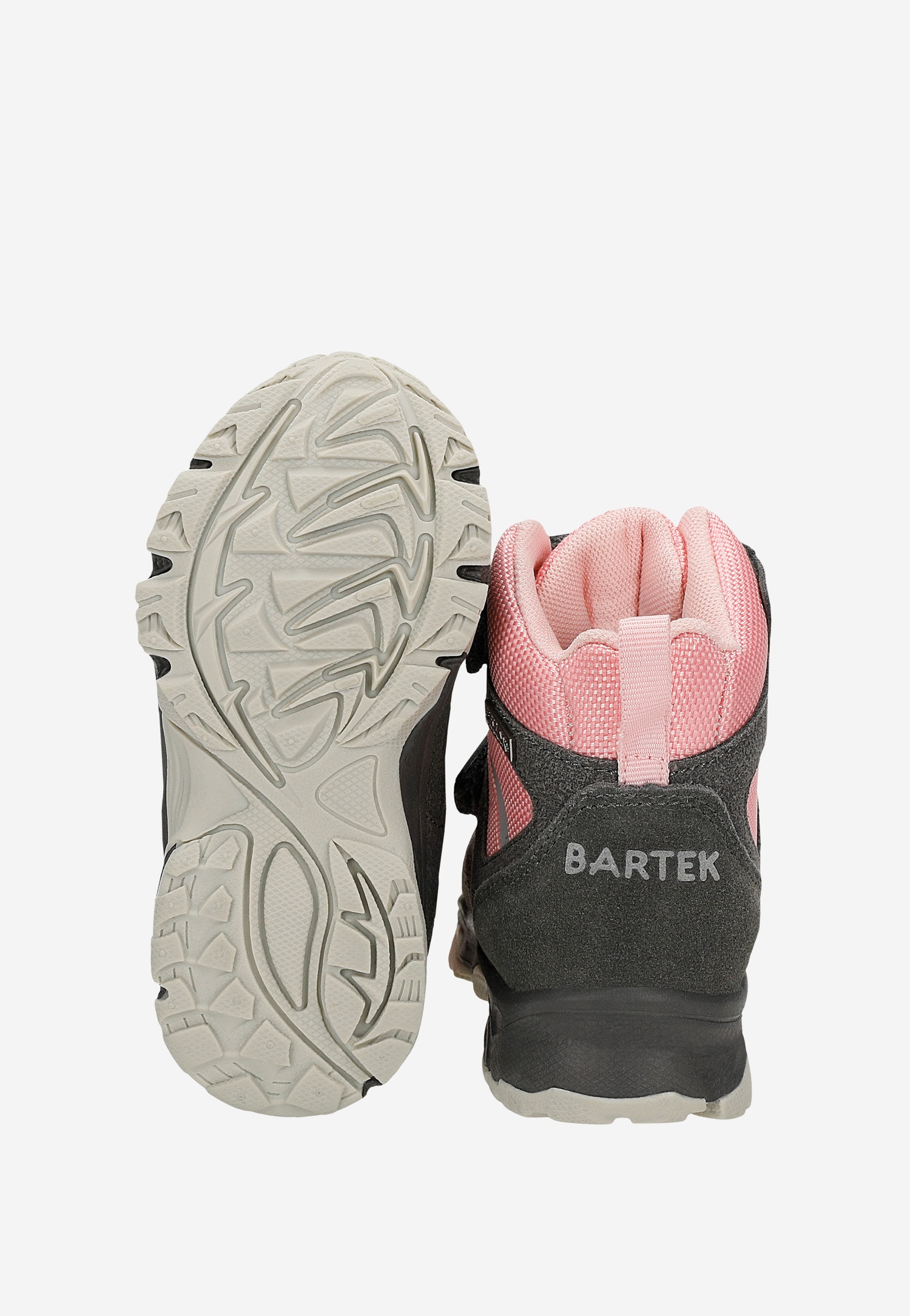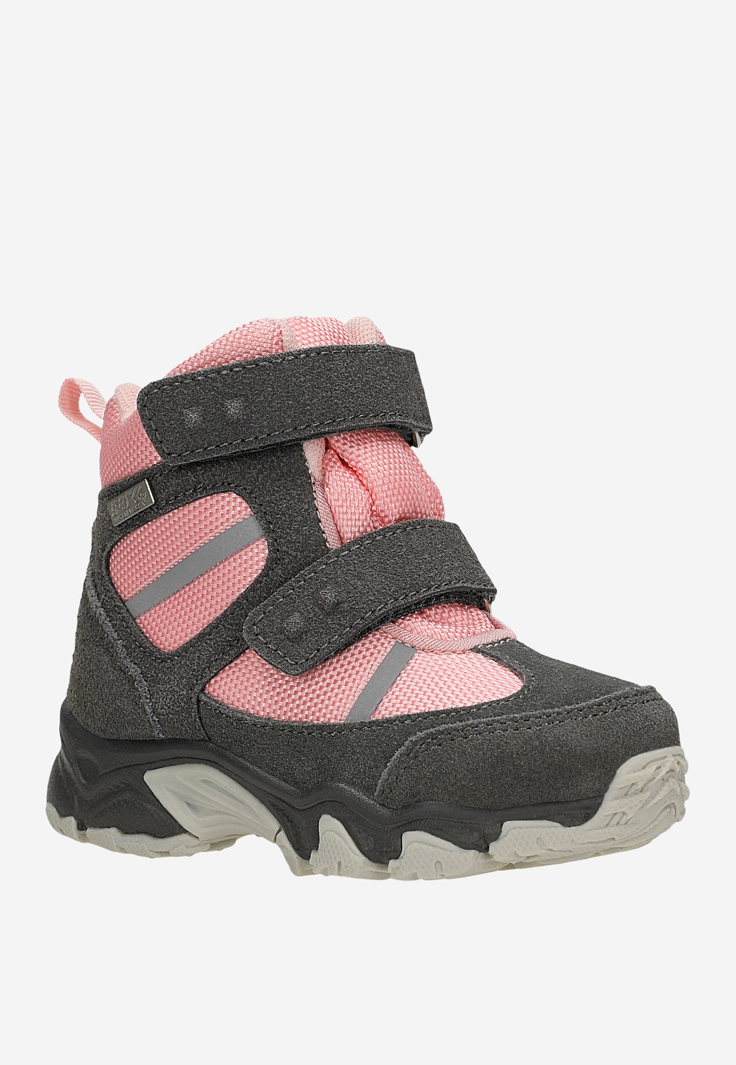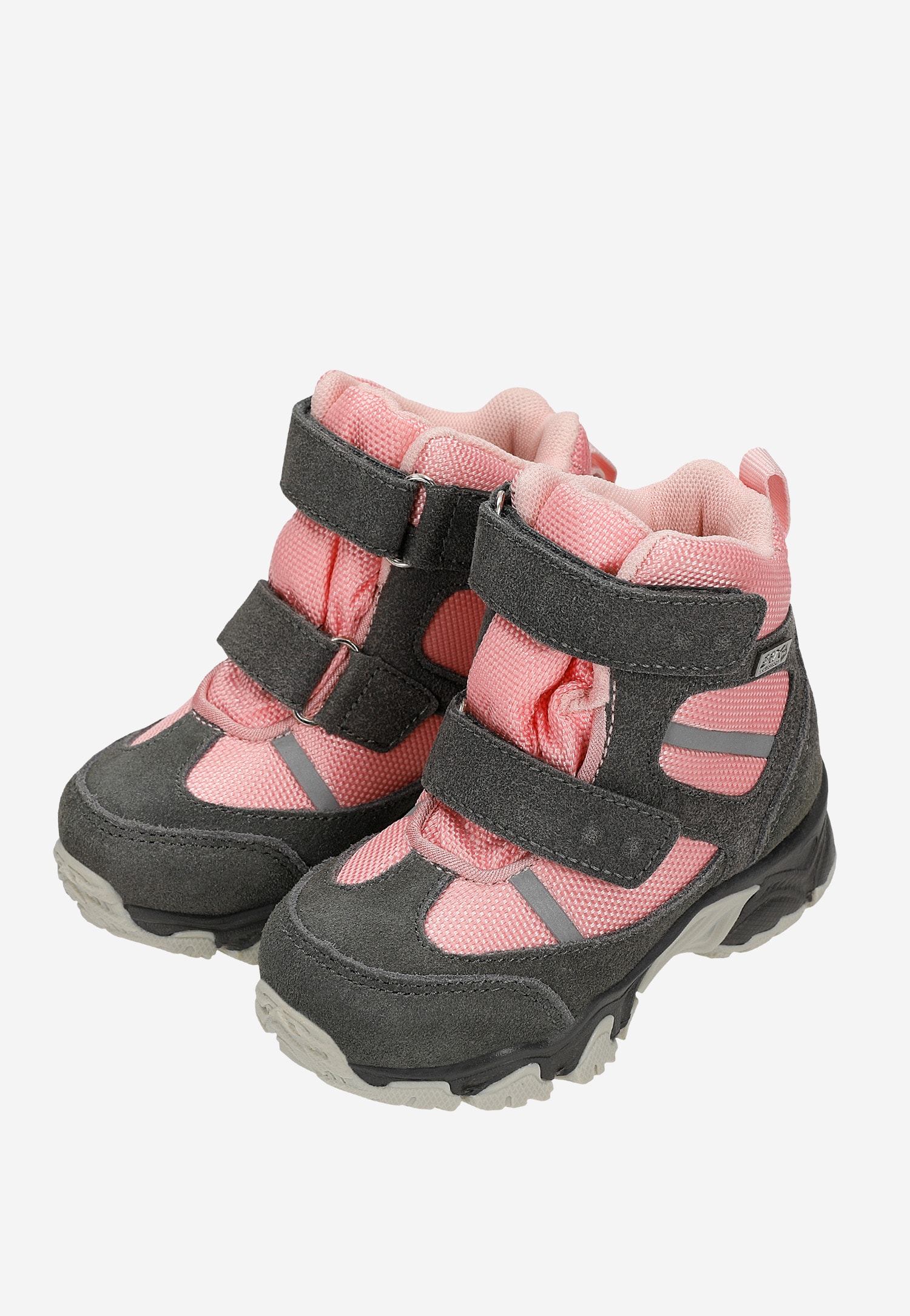 Trzewiki ocieplane BARTEK, w szaro-różowym kolorze.