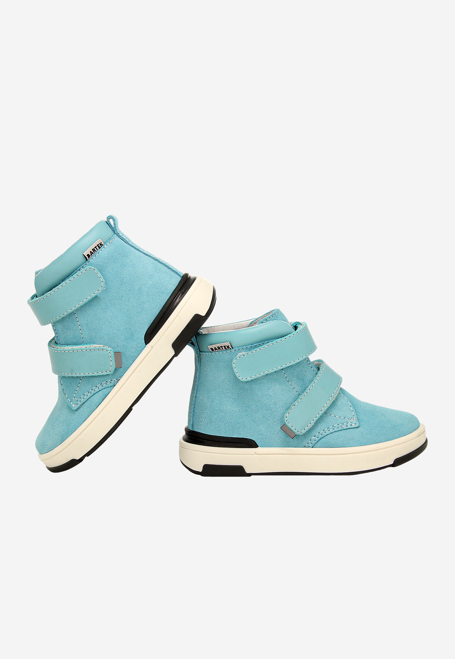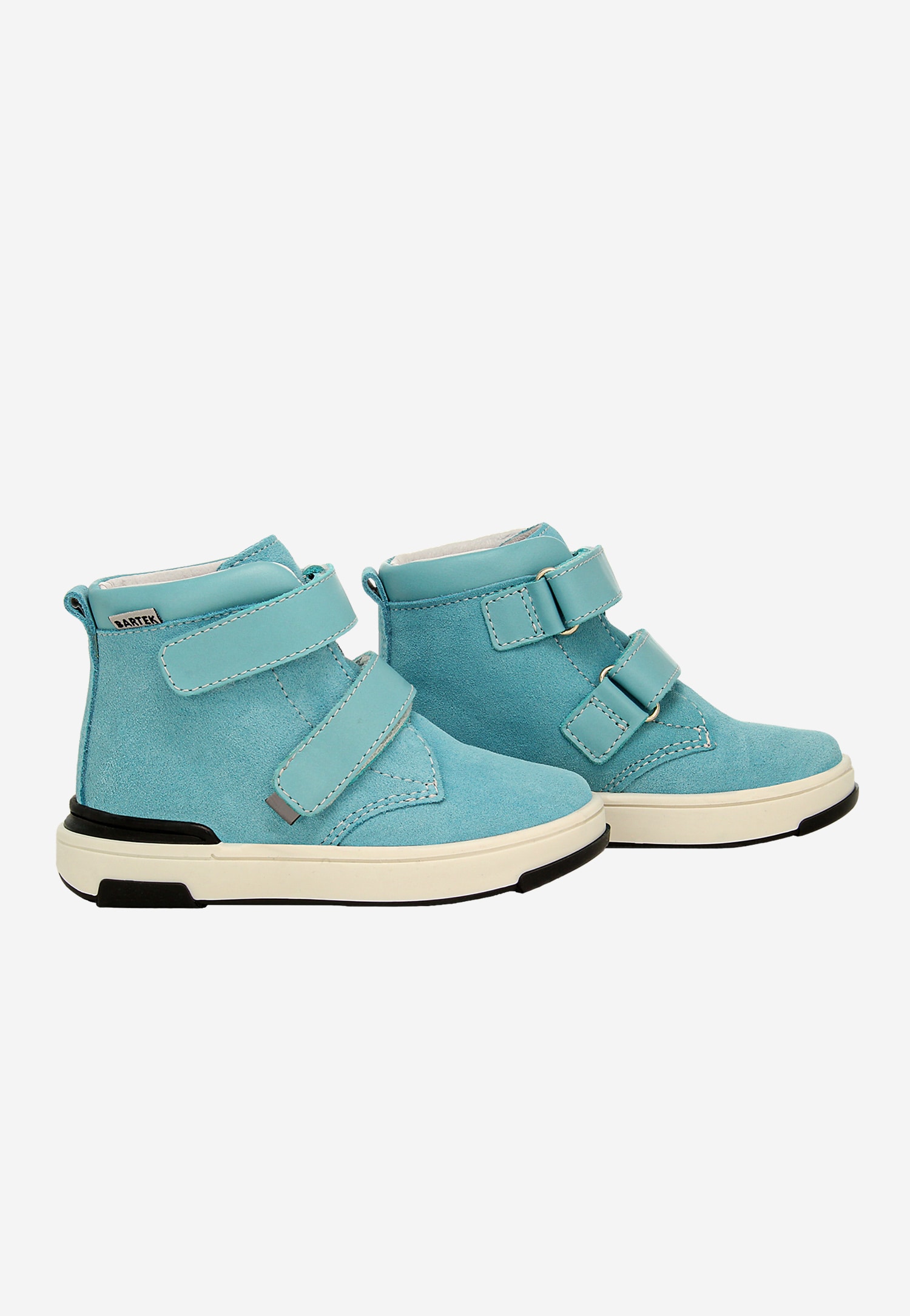 Turkusowe trzewiki BARTEK 1198505 z połączenia skóry welurowej i licowej