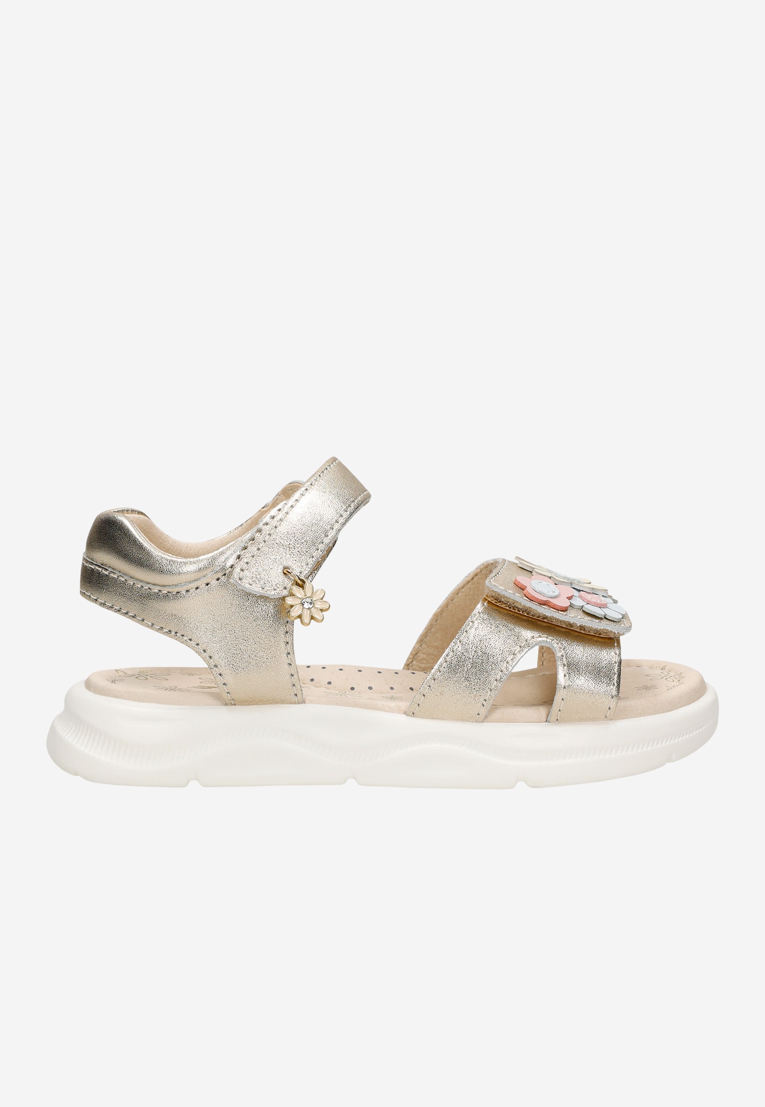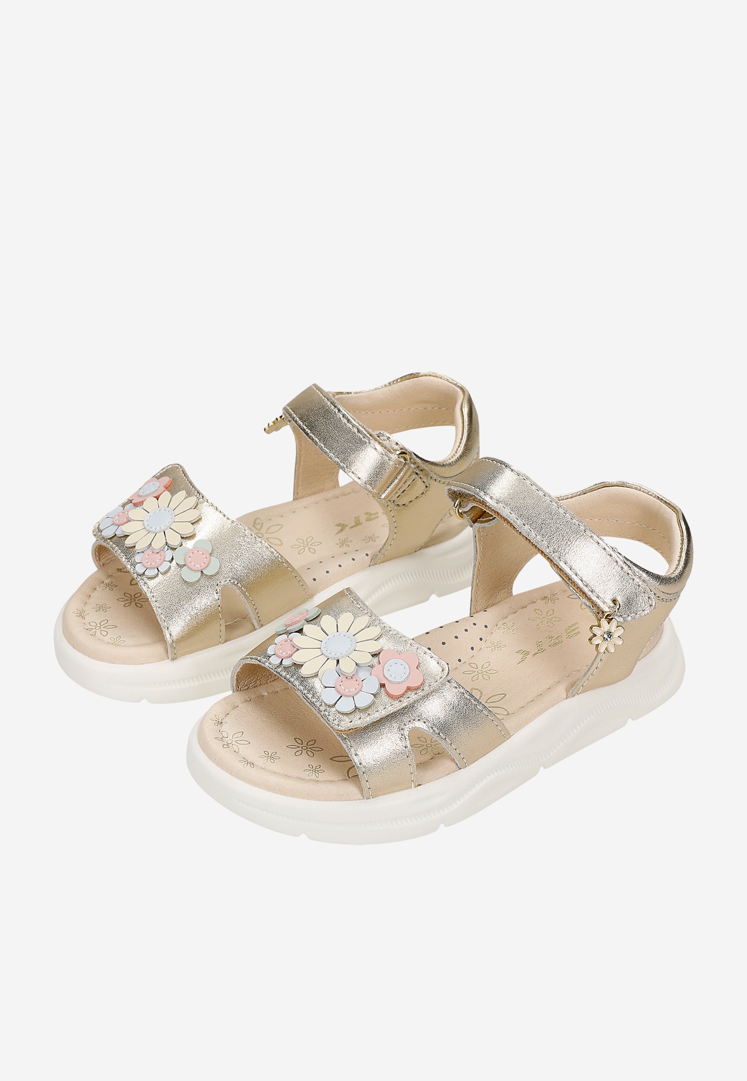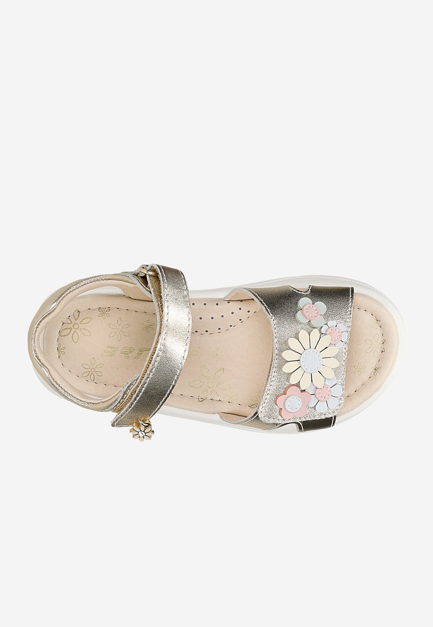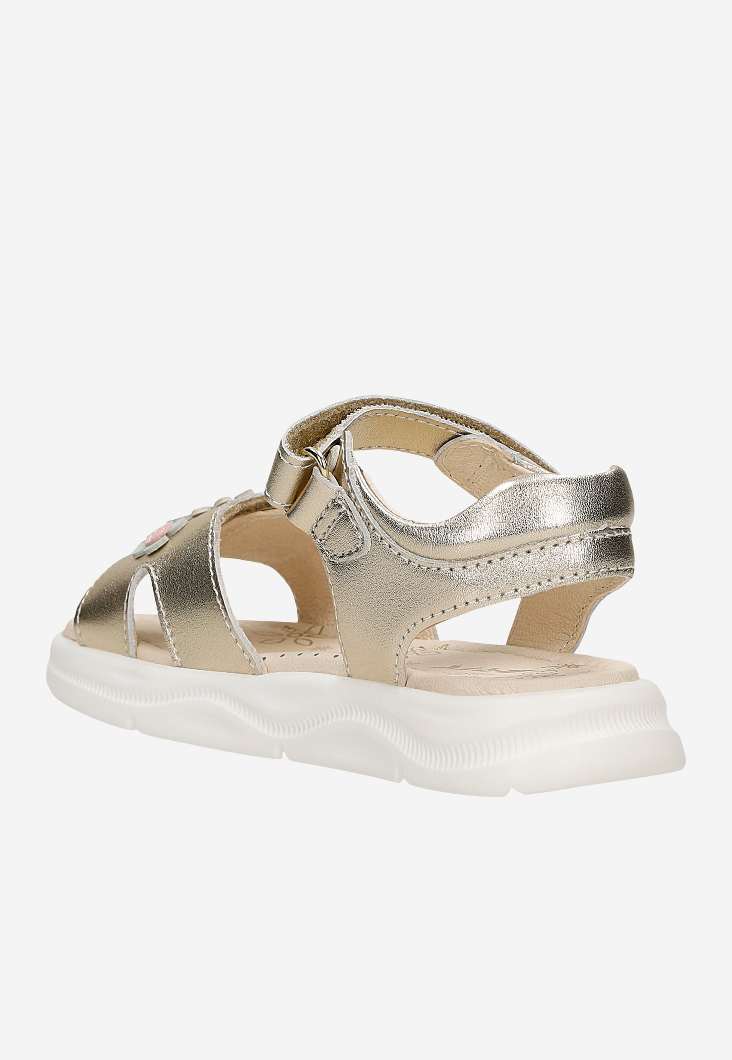 Złote sandały dziewczęce na rzep z kwiatowymi detalami BARTEK 84416-58